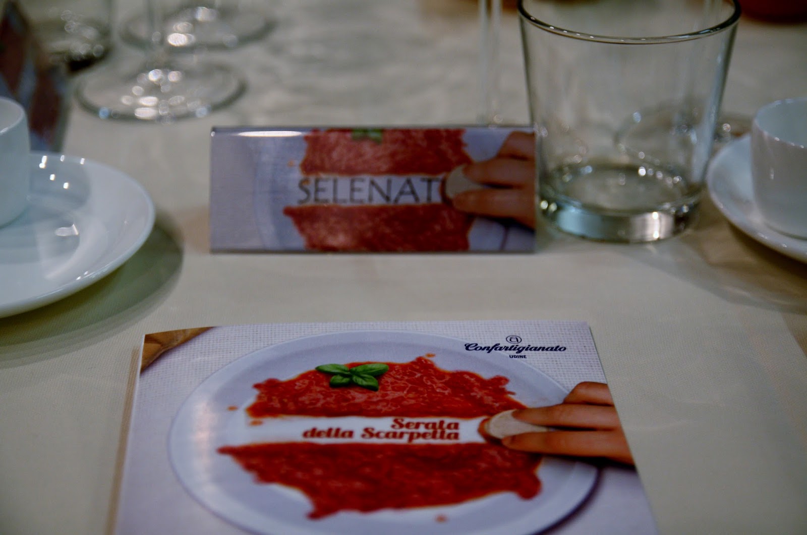 Assieme a me, oltre alle mie inseparabili compagne di avventura Alessandra, Giulia, Micaela, Theodora e Valentina (con le quali ho condiviso il progetto Friuli Doc), c’erano anche dei personaggi molto importanti: il magnifico rettore Cristiana Compagno, il prefetto Ivo Salemme, l’assessore comunale Venanzi, la dirigente della Camera di Commercio, il presidente della Confartigianato di Udine e il presidente della Filologica italiana. L’unico requisito della serata: mangiare senza posate, servendosi di pezzi di pane e quindi facendo la scarpetta, in buona compagnia!