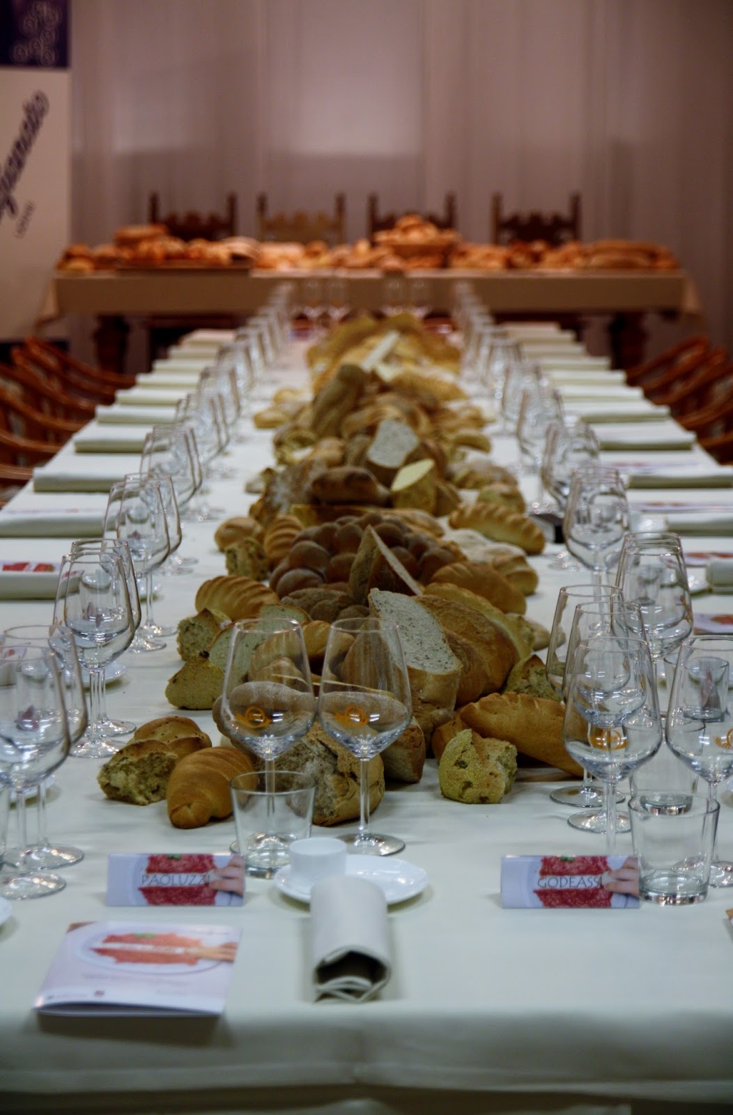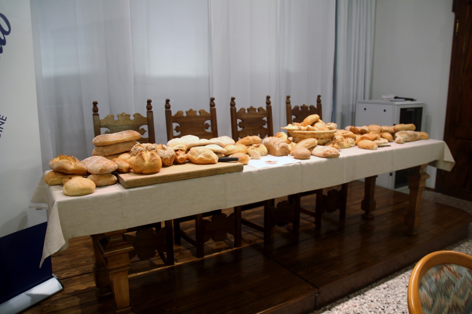 Il pane sui tavoli è stato realizzato da 3 panificatori artigiani: Ada Pinzano, del forno Arcano di Rive d’Arcano; Stefano Paoluzzi con il forno a Buttrio ed Enzo Cavallo, di Udine. Il pane proposto era di diversi tipi: cotto in forno a legna, a lievitazione naturale, con farine del territorio e rigorosamente fresco! Ogni portata, realizzata dallo Chef Roberto Gruben, era abbinata ad un tipo di pane particolare.