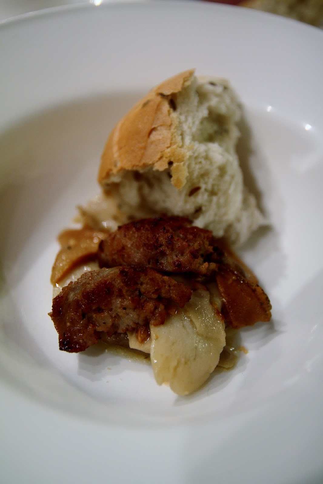 Tocio di funghi e salsiccia di Carnia con pane al kummel.