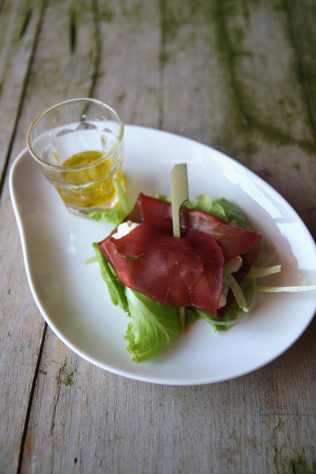 Ingredienti per 4 persone: 12 fette di bresaola, 50 g di rucola, il succo di un limone, 15 foglie di basilico, 1 spicchio d’aglio, 200 g di ricotta, 8 petali di pomodori secchi sott’olio, 3 cucchiai di olio extra vergine d’oliva, fior di sale e pepe.