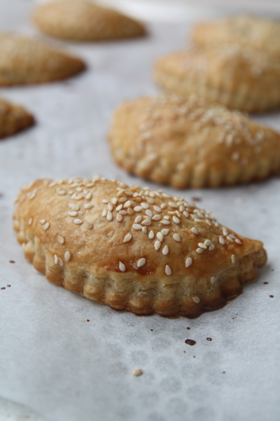 Cuocete i piselli in acqua bollente salata metà del tempo indicato sulla confezione. Nel frattempo, sbriciolate la salsiccia e rosolatela in una padella antiaderente calda per una decina di minuti, a fuoco vivo, mescolando spesso. Aggiungete il vino e lasciatelo evaporare. Spegnete il gas e aggiungete i piselli scolati, salate leggermente e mescolate. Srotolate la pasta sfoglia e ricavate dei dischi di 9,5 cm di diametro. Mettete al centro un cucchiaino di senape al miele e un po’ di ripieno. Chiudete a metà, schiacciando bene i bordi per evitare che il ripieno esca in cottura. Spennellate ogni panzerotto con un po’ di latte e spolverateli con i semi di sesamo. Infornate 25/30 minuti a 180°C. Serviteli tiepidi.