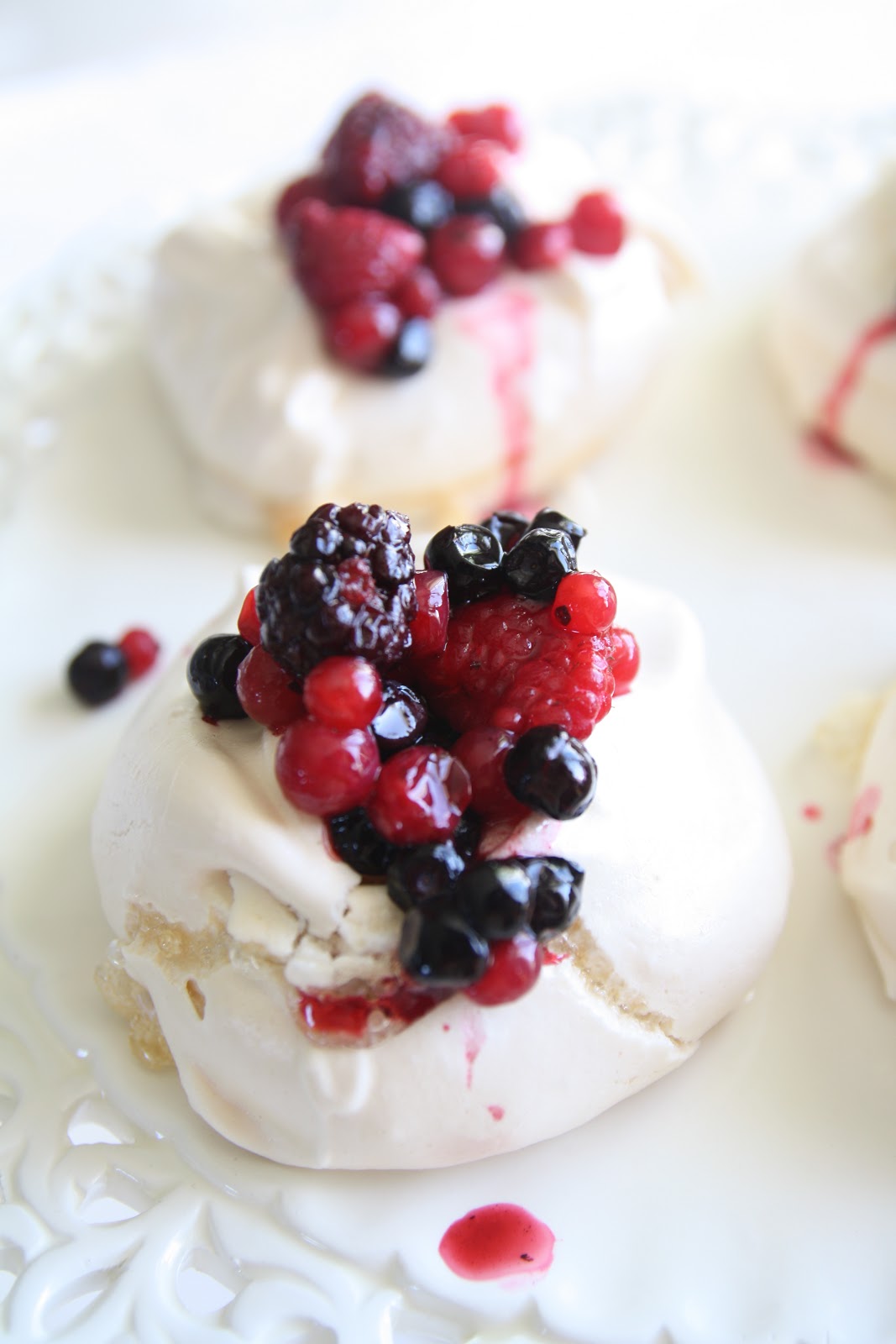Non sono mai stata una grande amante di meringhe… tutto quello zucchero concentrato… poi, un giorno, è venuta a trovarci mia cognata Aude, una persona squisita, a cui tengo molto. E’ giovane e da poco si interessa alla cucina, con mio grande piacere! Parlando del più e del meno, ho scoperto che va matta per le meringhe, allora, per farle piacere un pomeriggio ho deciso di prepararle delle mini pavlove con i frutti di bosco: ne è stata felicissima! Le ho assaggiate anche io e ho dovuto ricredermi: preparate così le meringhe mi piacciono proprio!