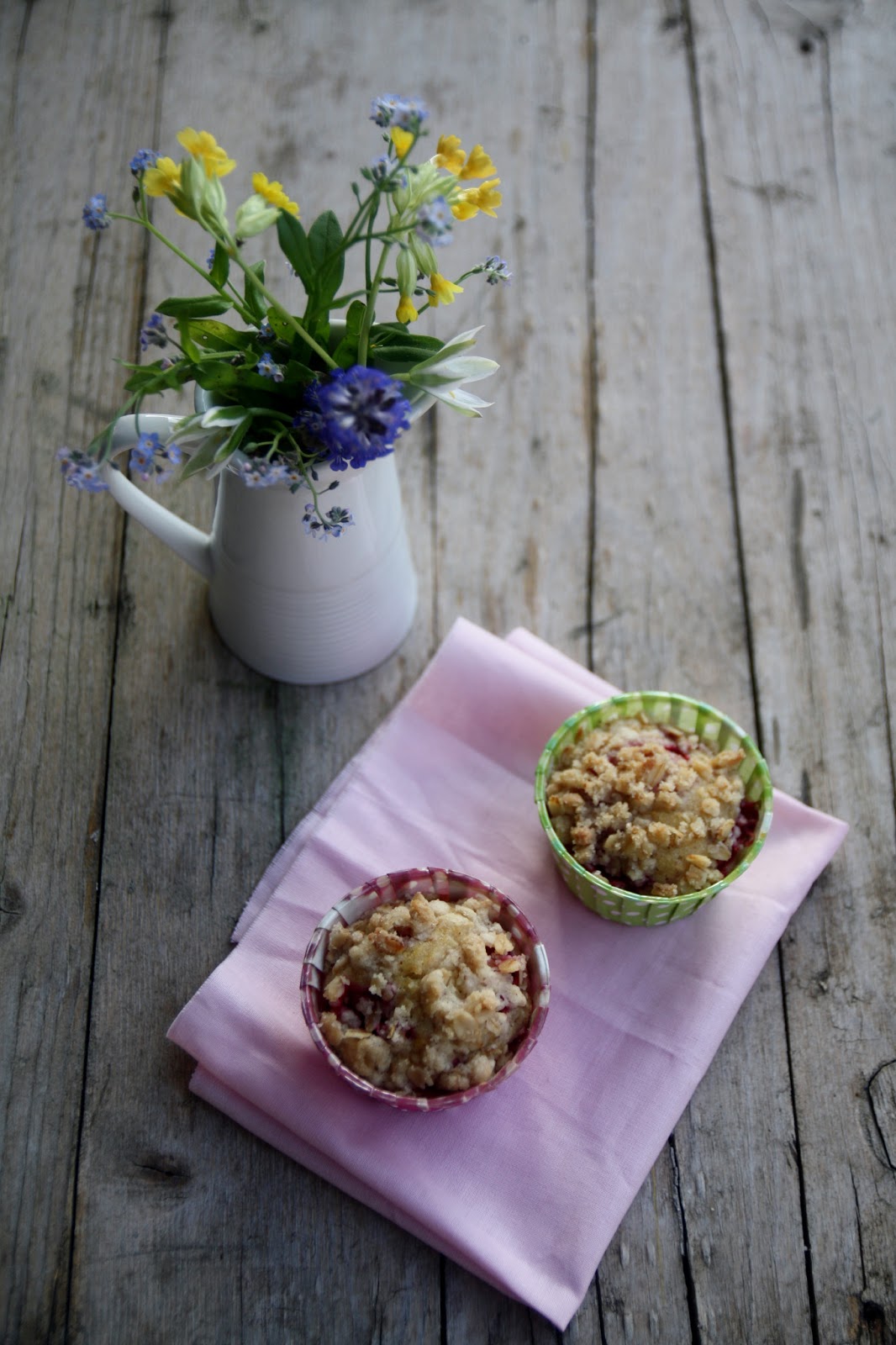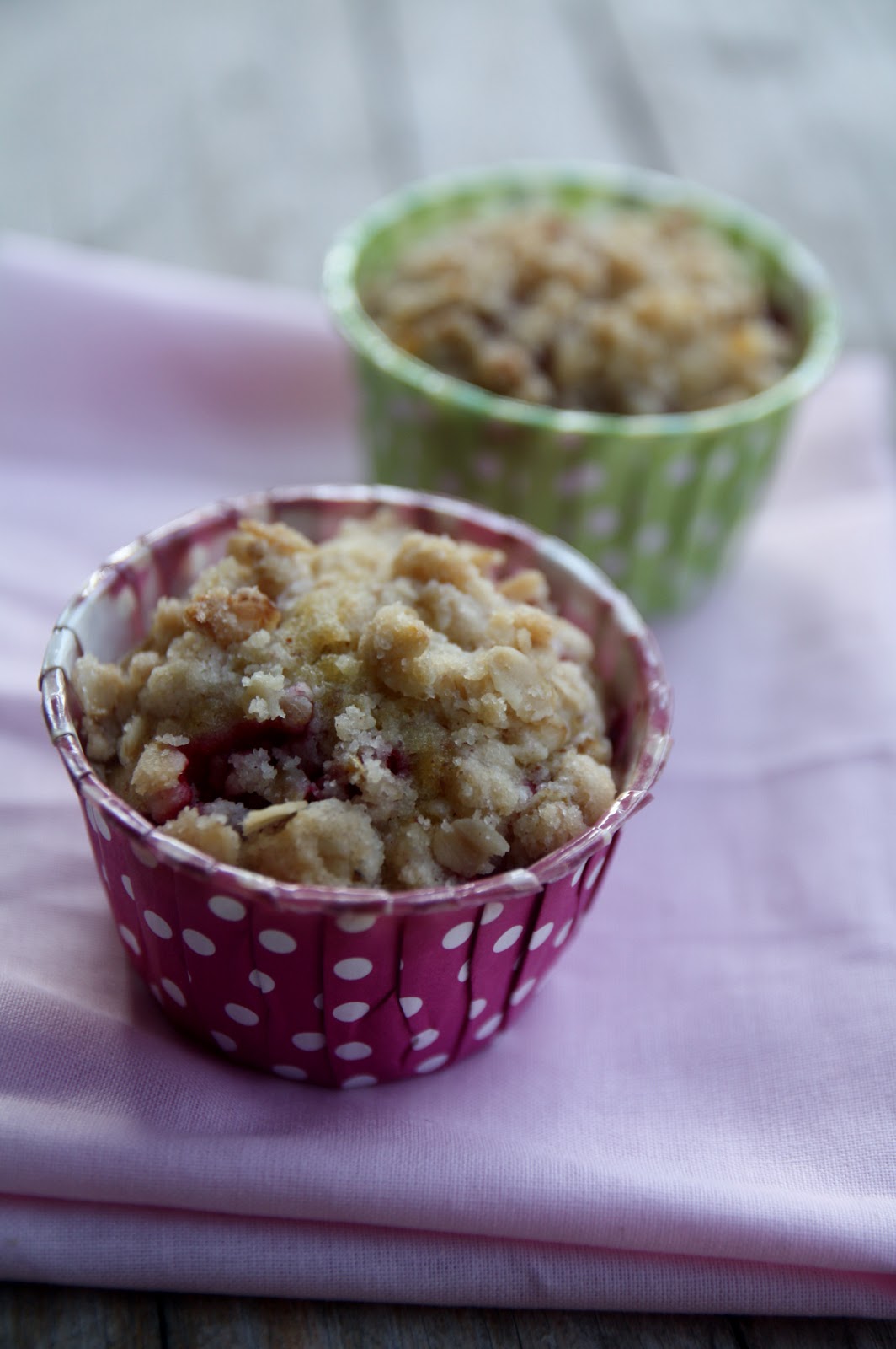 Ingredienti per lo streusel (briciole che danno una nota croccante ai dolci): 30gr di farina, 25gr di fiocchi d’avena, 25gr di zucchero muscovado chiaro (o zucchero di canna), un pizzico di cannella, 30gr di burro.