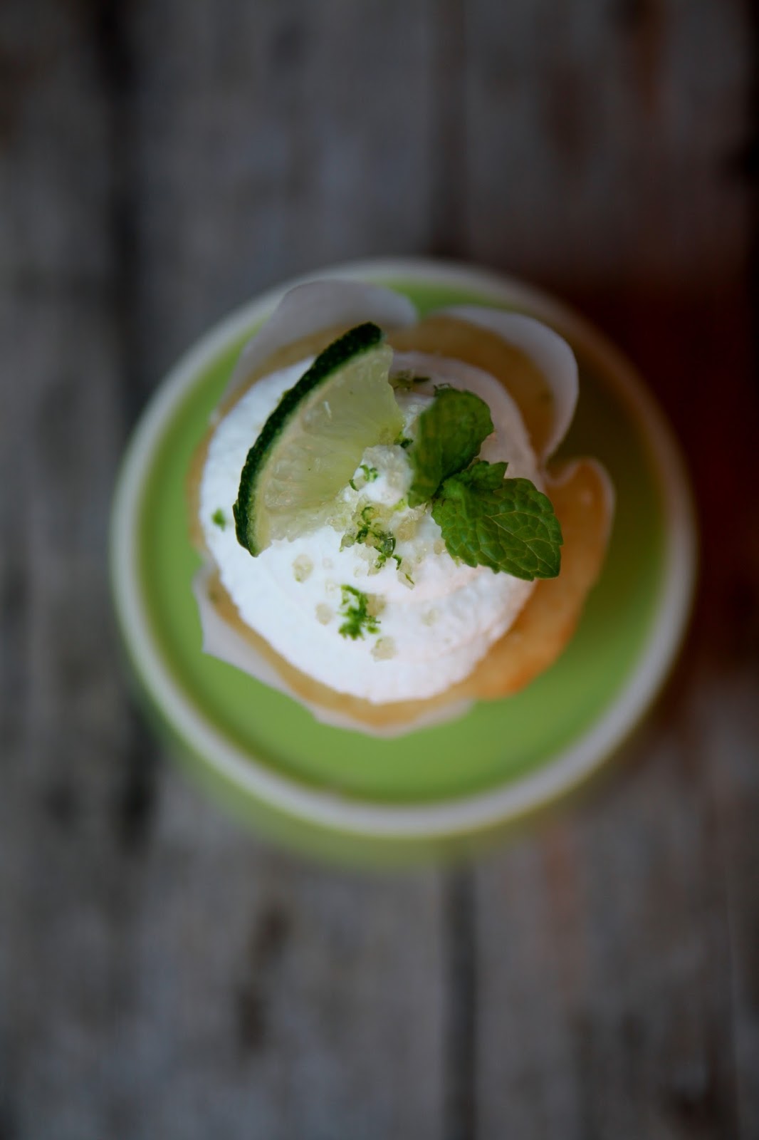 Per il frosting: 150ml di panna fresca, 150gr di mascarpone, il succo di mezzo lime. Per decorare: 1 cucchiaio colmo di zucchero di canna, la scorza grattugiata di 1 lime, qualche fogliolina di menta.