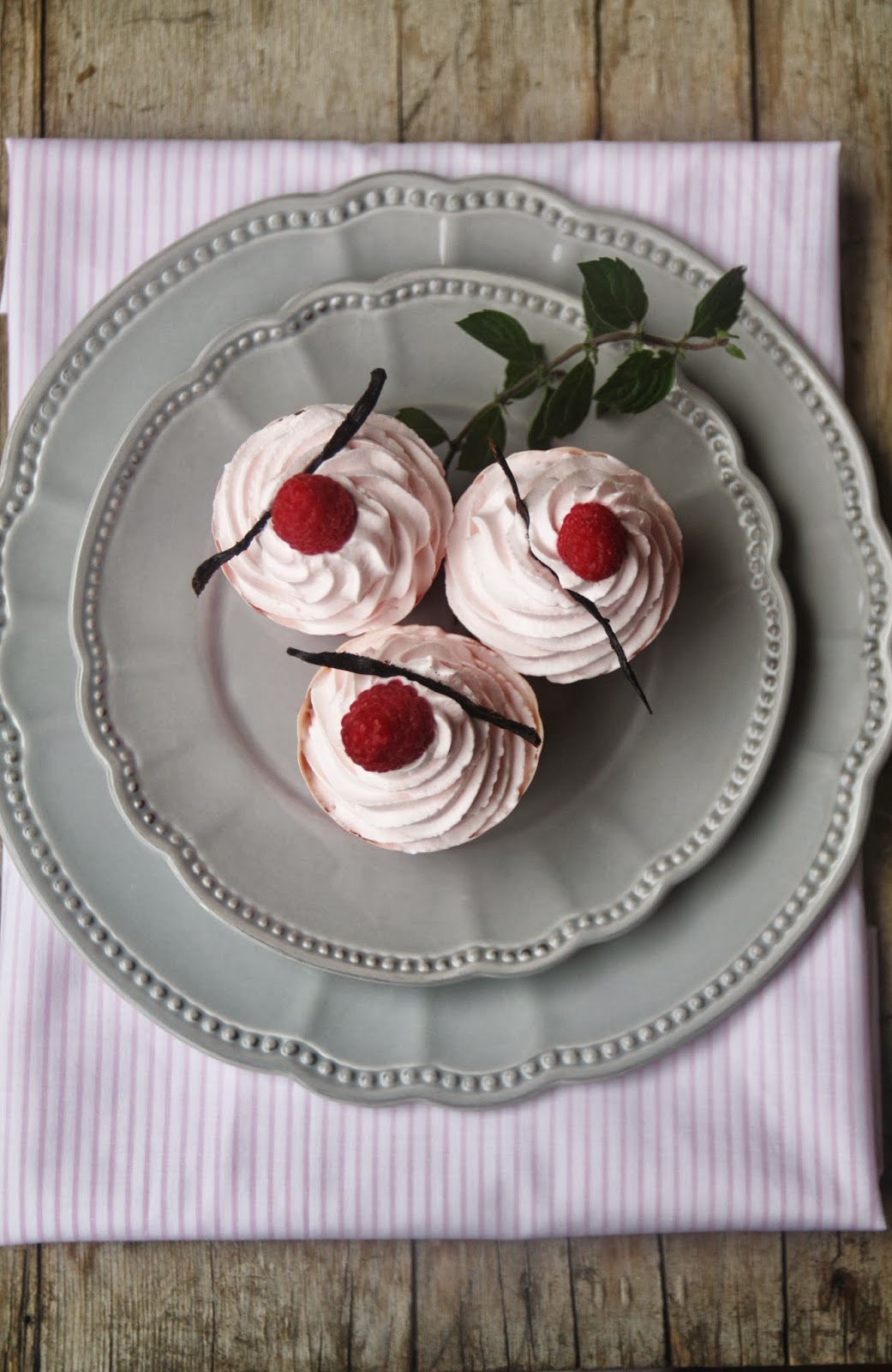 Mescolate tutti gli ingredienti, schiacciando i lamponi. Quando i muffin sono freddi, scavate un buchino al centro con un leva torsoli, riempitelo con il composto ai frutti rossi e richiudete il buco. Procedete in questo modo con tutti i muffin.
