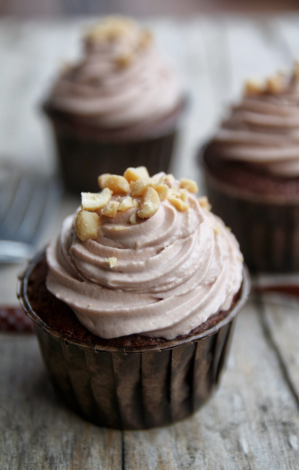 Montate la panna con le fruste elettriche, poi incorporate la Nocciolata alla fine, quando la panna è semi-montata. Montate ancora un pò e trasferite la crema in una tasca da pasticcere con bocchetta a stella. Decorate i muffin freddi e serviteli con qualche nocciolina salata, tritata grossolanamente.