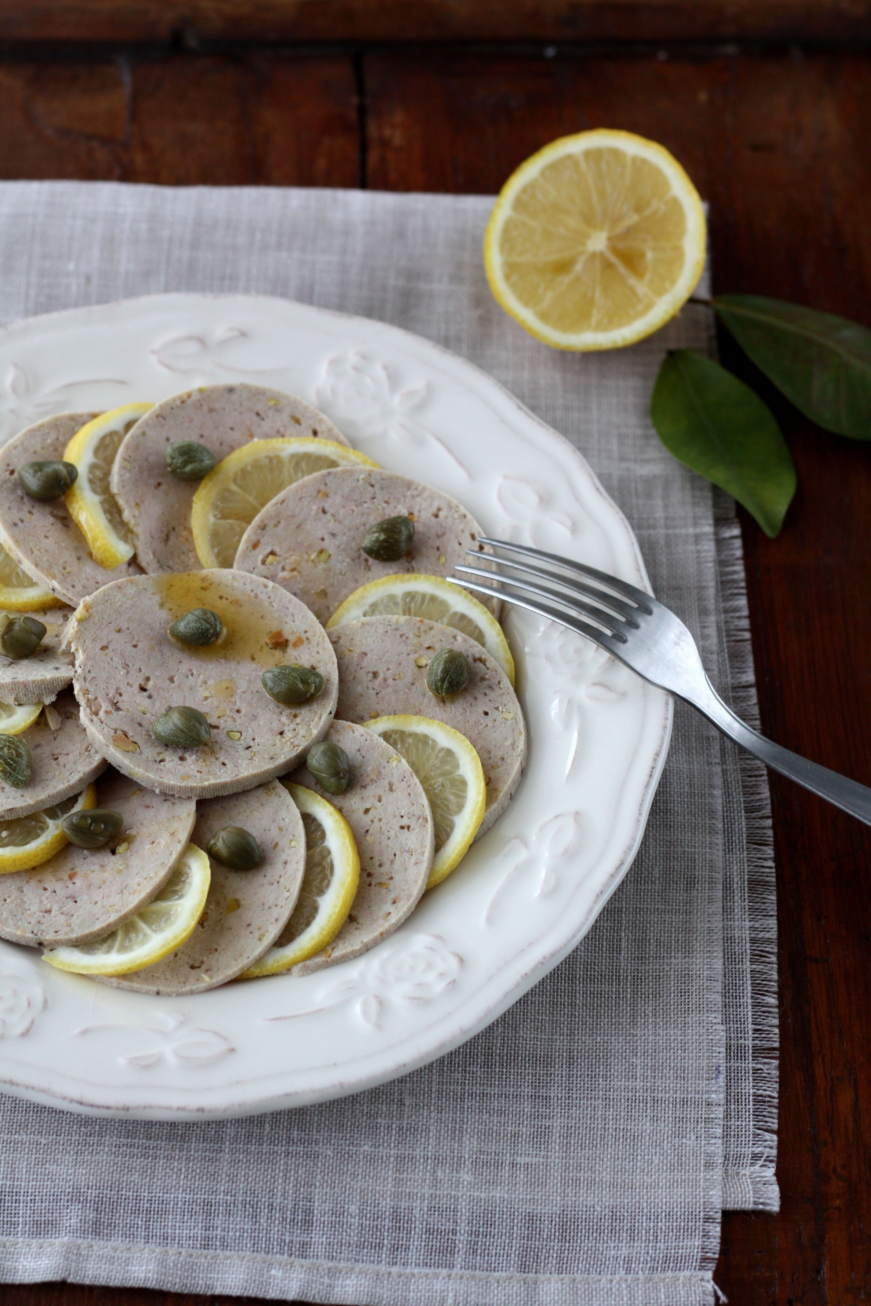 Al momento di servire, tagliatelo a fettine sottili e disponetele su un piatto alternandole a fettine di limone. Cospargete di capperi e abbondante olio d’oliva.